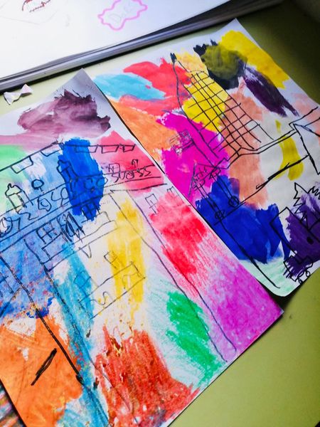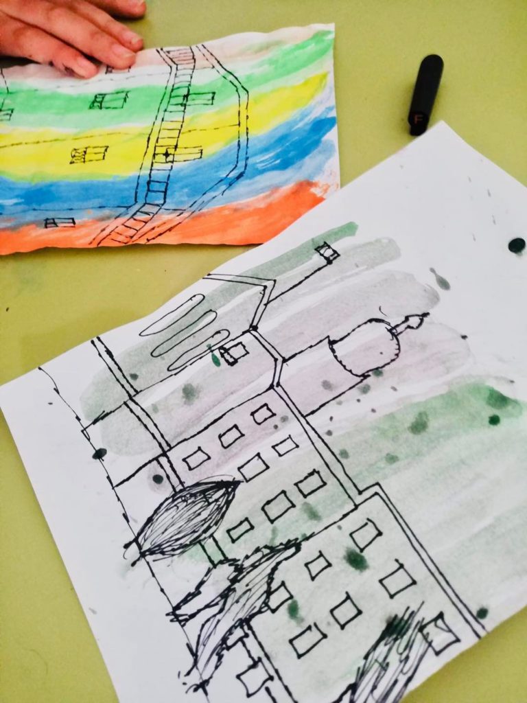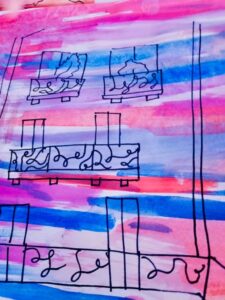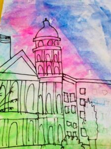 As an introduction to the theme “Built Environment” British School of Lanzarote Year 8 students had fun producing creative and colourful backgrounds, to then develop sketches of different houses